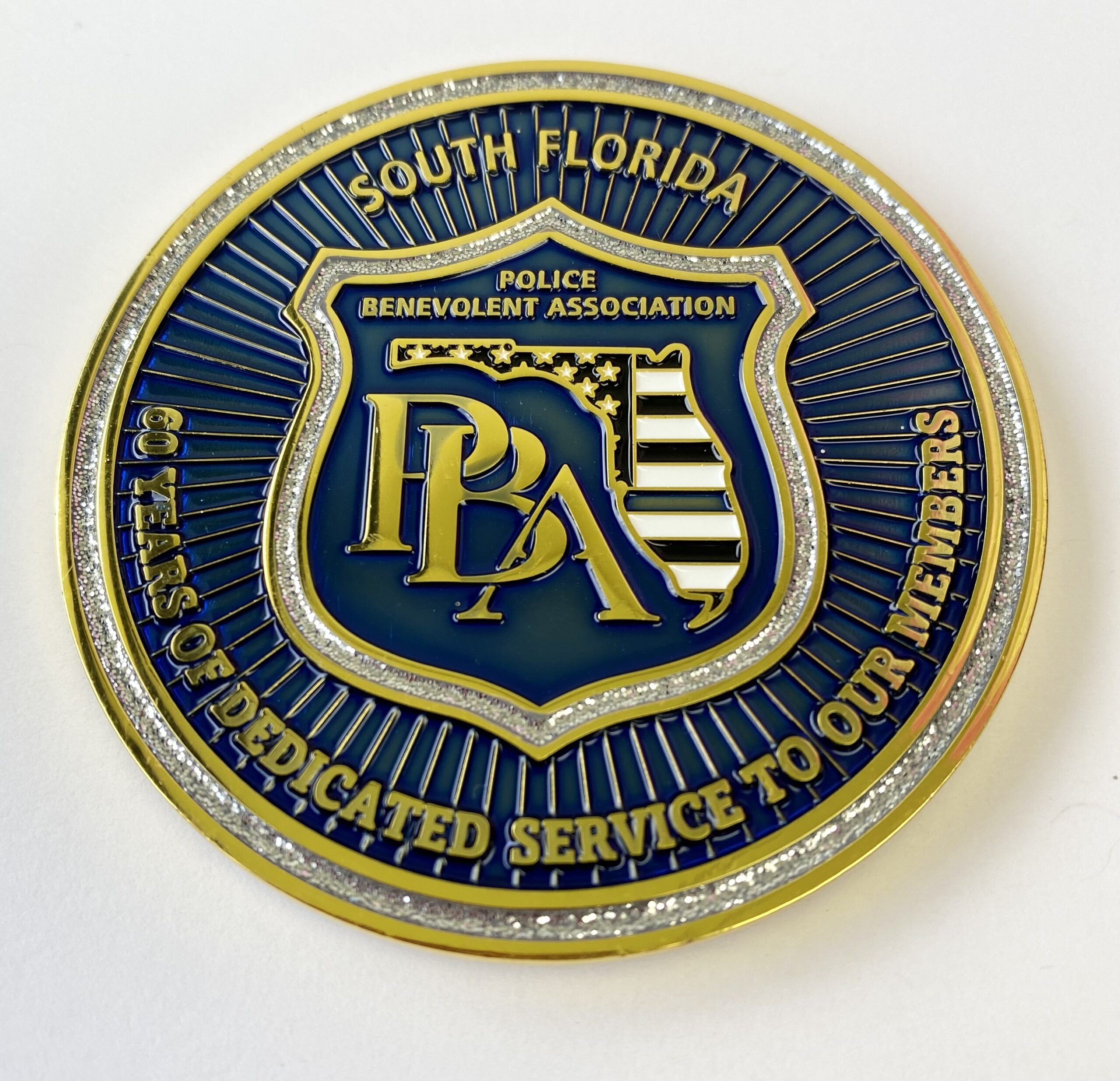 Celebrate six decades of service with the PBA 60th Anniversary Coin. This commemorative coin, priced at $20, features intricate designs honoring the South Florida Police Benevolent Association’s legacy. A perfect keepsake for collectors and supporters alike.