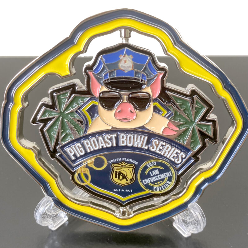 Celebrate the spirit of community and support with the Spinner Pig Roast and Love Fund Coin. Priced at $20, this collectible coin features a rotating design, showcasing the iconic Pig Roast Bowl Series on one side and the Love Fund emblem on the other. A must-have for collectors and supporters of the South Florida PBA.